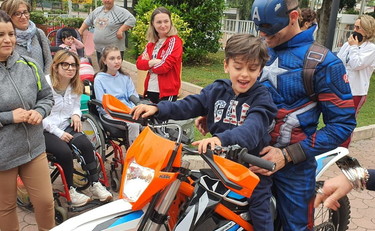 Un supereroe su due ruote e l’ebrezza del vento sul viso e del sorriso sulle labbra: è stata una mattinata diversa dalle altre per i piccoli pazienti del Reparto di Riabilitazione Pediatrica e Disabilità dello Sviluppo dell'IRCCS San Raffaele grazie alla visita di Emiliano Malagoli, il campione paralimpico internazionale di motociclismo e Presidente dell’associazione Di.Di. - Diversamente Disabili, che porta la mototerapia negli ospedali per vedere la gioia negli occhi dei bambini.