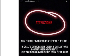 Qualche minuto dopo il fattaccio, sul profilo del Maxim Lounge è stato rimosso l'ignobile post ed è apparsa un'altra storia in cui il titolare del bar fanno sapere che "qualcuno si è intromesso nel profilo del bar! In qualità di titolare mi dissocio dalla storia postata precedentemente, che va contro ogni principio morale e logico!".