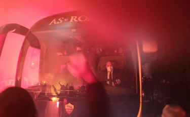 Anche a Formello i tifosi della Lazio si sono dati appuntamento per accompagnare la squadra di Inzaghi allo stadio. Partenza alle ore 18.40. Cori, bandiere e fumogeni, raduno al distributore vicino al centro sportivo. Il freddo e il vento non hanno impedito alle due tifoserie di riscaldare l’ambiente a due ore dal fischio d’inizio.