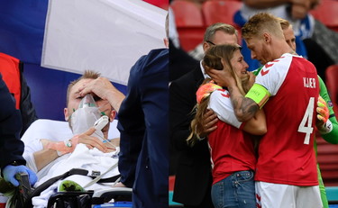A dare un po' di sollievo in quegli attimi angoscianti ci pensa anche un’immagine catturata nel momento dell’uscita in barella, con Eriksen che appare cosciente. Contemporaneamente, il mondo del calcio si stringe, tramite social, in un enorme abbraccio al giocatore. Tra i messaggi di vicinanza quelli dell’Inter, a partire dal presidente Zhang e l’ex tecnico Conte, poi i giocatori: Lautaro Martinez, Hakimi, Lukaku, che gli dedica in serata il gol in Belgio-Russia. Parole di sostegno anche dal suo ex club, il Tottenham, dai vertici del calcio come Infantino e Ceferin, dalla Nazionale azzurra e il suo ct Mancini, da big come Cristiano Ronaldo e Francesco Totti. La conferma che Eriksen è fuori pericolo arriva dalla decisione della Uefa di riprendere la partita interrotta, poi vinta dalla Finlandia.