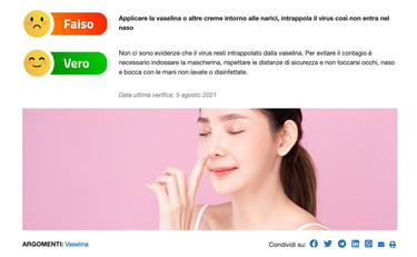 La sfilza è ricca di bufale spuntate nei primi giorni dell'emergenza, e ormai pressoché dimenticate. Come quella della vaselina da spalmare sul naso per non contagiarsi (ovviamente è escluso che funzioni), o la teoria che bere alcolici protegge più del vaccino (altra bufala, naturalmente): "Il consumo frequente di alcol o superalcolici non protegge dall’infezione da nuovo coronavirus. L'abuso di alcol è pericoloso per la salute, espone, infatti, al rischio di sviluppare malattie serie, tra cui cirrosi epatica e tumori. Per prevenire il contagio bisogna indossare la mascherina, rispettare le misure di distanziamento interpersonale di almeno 1 metro e lavarsi frequentemente le mani con acqua e sapone o soluzione a base di alcol per almeno 40- 60 secondi", il chiarimento del ministero. Insomma, a leggere la sezione fake news del sito governativo Speranza non ha grande stima degli italiani. E comunque pensa che in molti credano a queste cose che si è subito affrettato a smentire.