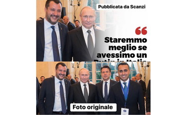 La tragica figuraccia di Scanzi, chi ha tagliato dalla foto con Putin e Salvini...