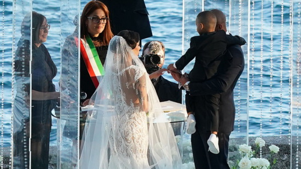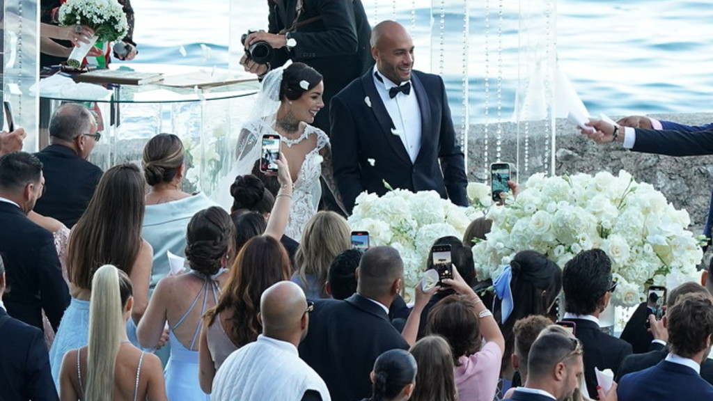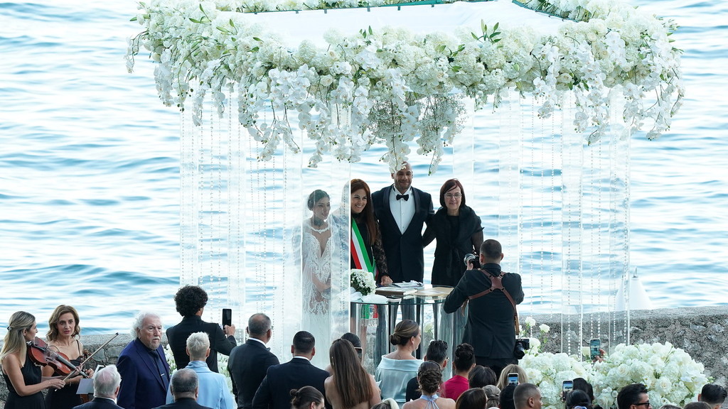 Marcell Jacobs e Nicole Daza sono marito e moglie. L’uomo più veloce del mondo, nonché campione olimpico sui 100 metri, si è unito in matrimonio con la storica fidanzata, mamma di due dei suoi tre figli. La cerimonia con rito civile è stata celebrata a Torre San Marco a Gardone Riviera. Elegantissimi sia Marcell che Nicole, lui smoking nero di Armani, scarpe di vernice e occhiali da sole a lente rotonda, lei avvolta in un abito bianco con pizzo fino a sopra il ginocchio con strascico lungo quattro metri e un fermaglio floreale tempestato di strass nei capelli. Prima di recarsi nel luogo prescelto, Marcell e Nicole sono stati applauditi, in momenti separati, al porto vecchio di Desenzano quando poi sono saliti a bordo di un motoscafo per attraversare il lago e raggiungere la torre. Tra i 170 invitati non era presente il padre di Marcell, Lamont rimasto negli Stati Uniti (“Mi ha bidonato” la reazione del velocista sul genitore). I neo sposi il 24 settembre partiranno per la luna di miele a Bali e alle Maldive.