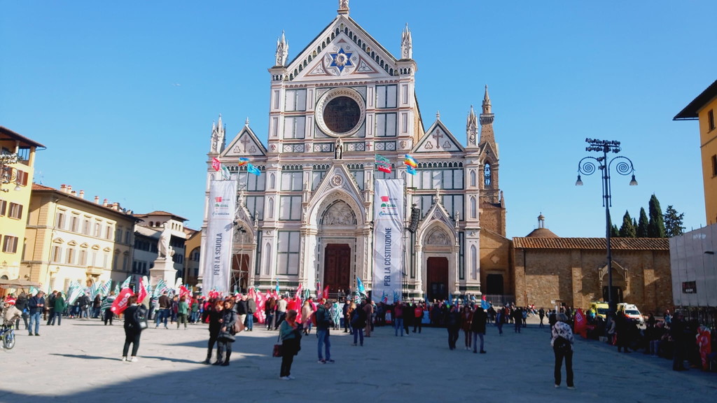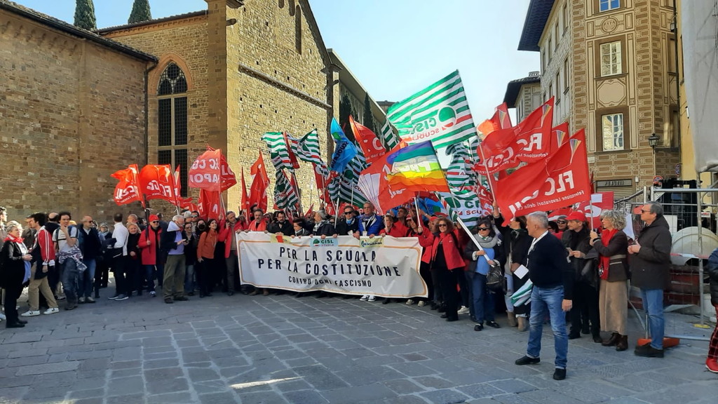 “Per la scuola, per la Costituzione, contro ogni fascismo”. All’insegna di questo slogan ha preso il via a Firenze, con diverse migliaia di persone, la manifestazione nazionale dei sindacati della scuola di Cgil, Cisl e Uil “per dire no a una violenza squadrista da condannare senza se e senza ma, per ribadire che l’affermazione e la difesa dei valori della Costituzione nata dalla Resistenza costituiscono un preciso dovere per tutta la comunità scolastica e per quanti a diverso titolo vi agiscono”. La manifestazione ha previsto un corteo che da piazza Santissima Annunziata ha raggiunto piazza Santa Croce, dove si è tenuto il comizio finale. Hanno parlato, tra gli altri, le Rsu dei tre sindacati organizzatori, un rappresentante dei genitori, dell’Anpi, Giuseppe Matulli, presidente dell’Istituto Storico Toscano della Resistenza e dell’Età contemporanea di Firenze e due studenti: uno del liceo classico ‘Michelangiolo’ e uno del liceo scientifico ‘Leonardo Da Vinci’. Davanti al ‘Michelangiolo’ il 18 febbraio due alunni sono stati aggrediti da sei giovani del gruppo di destra Azione Studentesca (ora indagati dalla magistratura).