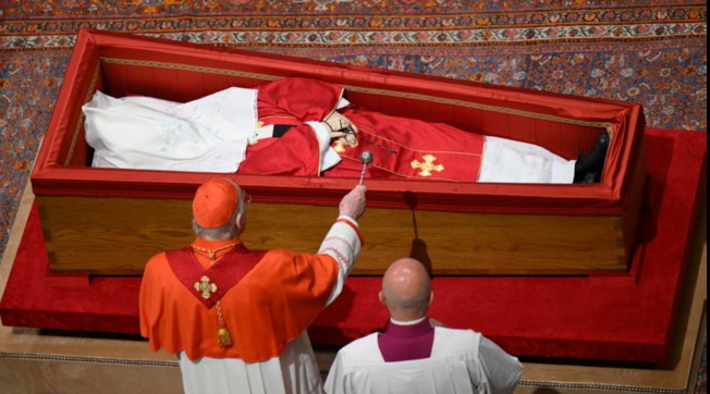 Saranno invece tre le tappe principali dell'ultimo viaggio di Papa Francesco: i funerali, il corteo funebre e la sepoltura. Le esequie si terranno in Piazza San Pietro, con inizio alle ore 10. La cerimonia sarà presieduta dal cardinale Giovanni Battista Re, decano del Collegio cardinalizio. Concelebreranno 220 cardinali e 750 tra vescovi e sacerdoti. La durata della cerimonia sarà di circa un'ora e 30 minuti. La bara di legno e zinco, sigillata questa sera, verrà collocata sul sagrato antistante la Basilica, davanti all'altare. Con le esequie cominciano i Novendiali, dal latino Novem Dies, ossia il periodo liturgico di nove giorni consecutivi dedicato alla celebrazione di messe in suffragio del Papa. Al termine della celebrazione eucaristica avranno luogo l'Ultima commendatio e la Valedictio, presieduti dal cardinale Baldassare Reina, vicario Generale per la diocesi di Roma e da Youssef Absi Patriarca di Antiochia dei greco-melchiti. A seguire la supplica della Chiesa di Roma quella delle Chiese Orientali.