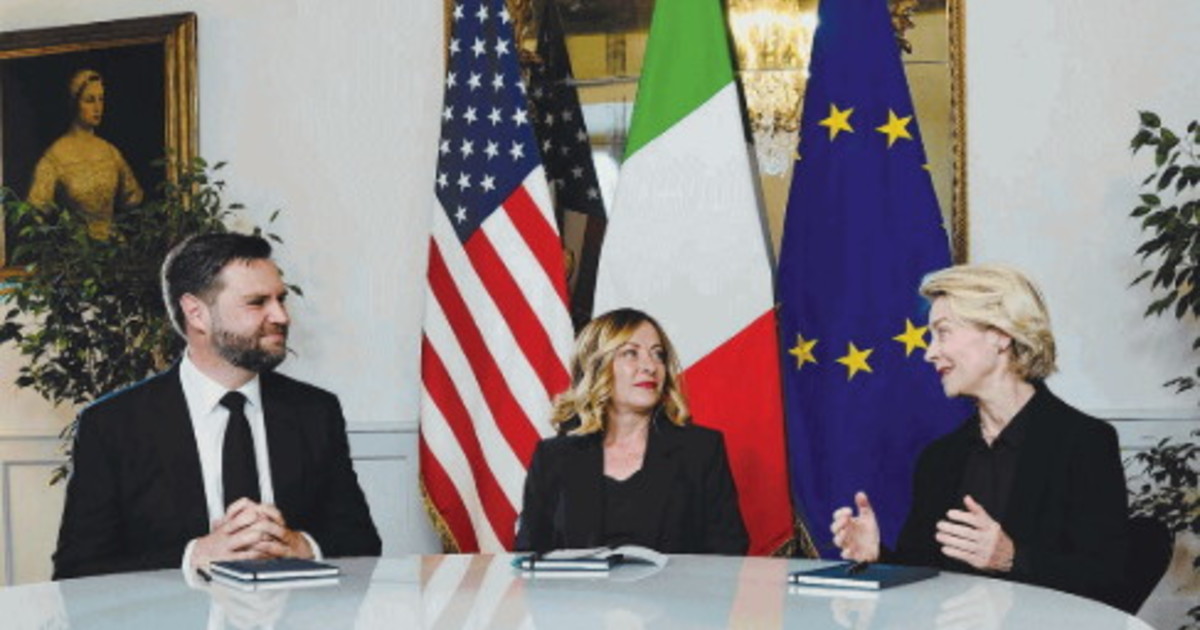 Quello di ieri, a palazzo Chigi, potrebbe essere un nuovo inizio nelle relazioni tra Stati Uniti ed Unione europea sui dazi. È questo l’augurio espresso dalla premier, Giorgia Meloni, dopo aver riunito, intorno allo stesso tavolo, il vicepresidente degli Usa, JD Vance, e la numero uno della commissione europea, Ursula von der Leyen.