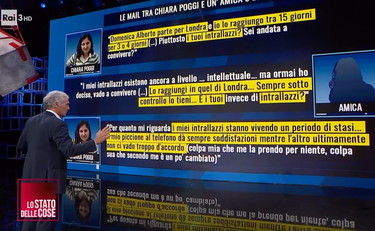 Ma il clou della puntata è un'email recuperata dal computer di Chiara, racconta Giletti, che fa parte di uno scambio epistolare fatto dalla 26enne, che all'epoca lavorava in un'azienda di Milano mentre Alberto si stava per laureare, e un'amica avuto il 5 luglio, circa un mese prima dell'omicidio che è avvenuto il 13 agosto 2007. Ecco le parole esatte mandate in onda su Rai3. Chiara scrive: "Domenica Alberto parte per Londra, io lo raggiungo tra 15 giorni per 3 o 4 giorni (...) Piuttosto i tuoi intrallazzi? Sei andata a convivere?". L'amica risponde: "I miei intrallazzi esistono ancora a livello ... intellettuale... ma ormai ho deciso, vado a convivere (...) Lo raggiungi in quel di Londra... Sempre sotto controllo lo tieni... E i tuoi invece di intrallazzi?".