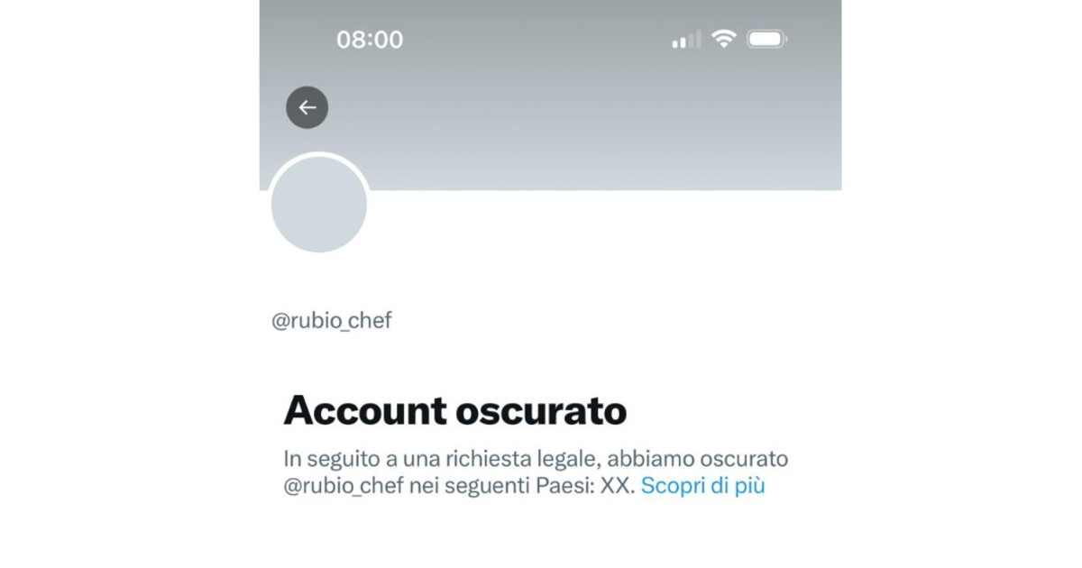 Il caso Rubio non si placa. E ora intervengono anche i moderatori del social X. Solo una manciata di ore dopo lo scontro social con il direttore de Il Tempo, Tommaso Cerno, il social X ha bloccato il profilo dell'ex cuoco tv, ora attivista ProPal. Sebbene non è ancora chiaro se la decisione di X sia collegata o meno alla querelle social, sulla pagina X di Rubio c'era scritto che "in seguito a una richiesta legale abbiamo oscurato @rubio_chef". Dopo un paio d'ore, però, l'account X di chef Rubio è stato riattivato e ora è perfettamente funzionante.