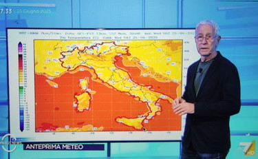 Pochissime nuvole e l'alta pressione che domina sul meteo italiano. A fornire le previsioni del tempo di mercoledì 25 giugno e dei giorni seguenti su La7 è Paolo Sottocorona. Il meteorologo in questo caldo inizio d'estate spiega che dalle mappe emerge che la temperatura del mare ha superato i 25°, al sud, mentre le minime sono un po' meno alte. La situazione della giornata di oggi: cieli sereni al sud, centro, zone di pianura del nord. Qualche debole fenomeno si presenta sui rilievi aplini, sull'Alto Piemonte.