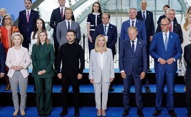 Conferenza per la ricostruzione dell'Ucraina a Roma. Giorgia Meloni ha accolto gli ospiti stranieri giunti alla Nuvola. Scambi di abbracci tra gli altri con la presidente della Commissione Ue, Ursula von der Leyen, con il presidente albanese Edy Rama, lo spagnolo Pedro Sanchez, il polacco Donald Tusk, il presidente del Consiglio europeo Antonio Costa, il vicepresidente della Commissione europea Raffaele Fitto e Volodomir Zelensky, leader ucraino. Con Zelensky c'era anche la moglie Olena, per il saluto e l'abbraccio con Meloni. Tra gli ospiti accolti dalla premier anche il cancelliere tedesco, Friedrich Merz e Maia Sandu, presidente della Moldavia.