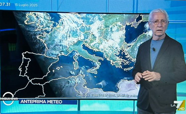 Se si considera che siamo nel periodo più caldo dell'anno (che va dal 15 luglio al 15 agosto), le temperature "sono ancora un poco sotto i valori normali", ma "piano piano risalgono": Così Paolo Sottocorona ha iniziato il suo intervento quotidiano a Omnibus, dove diffonde le previsioni meteo. "Al momento vedete qualche nuvola sul basso Tirreno, in parte sull'alto Tirreno, poco sulle Alpi", ha detto, passando poi ad analizzare cosa potrebbe cambiare nel pomeriggio. Si attende "qualche precipitazione sulle zone alpine e prealpine, però i fenomeni intensi sono veramente isolatissimi". Al Centro e al Sud, "non c'è nulla".