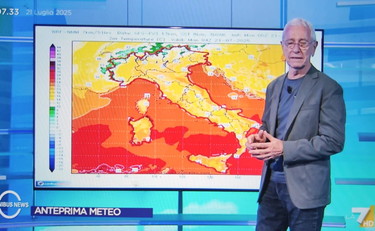 Martedì 22 luglio "migliora decisamente al nord, resta qualcosa nella zona di nord-est, Friuli Venezia Giulia, in maniera isolata anche il Veneto e il Trentino Alto Adige, ancora con fenomeni di una certa consistenza ma molto più isolati". Mercoledì 23 luglio tornano sulle "zone di nord-ovest fenomeni di una certa consistenza, minori sulle Alpi centrali", mentre al centro e al sud sempre tempo stabile. Le temperature. "Teoricamente", osserva il meteorologo, "avremo più caldo...". Sarà così? "Le minime di questa mattina sono su valori abbastanza alti, le massime sono state in qualche caso molto elevate" anche se la "tendenza nelle prossime 24 ore è di diminuzioni al nord, diminuzioni al centro, diminuzioni in Sardegna anche piuttosto marcate, qualche leggero aumento soltanto al sud e Sicilia".