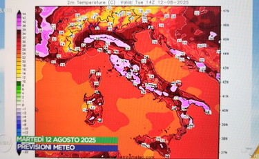Caldo intenso su tutta Italia senza soluzione di continuità, con picchi di 39 gradi nelle città e nelle località più roventi. Dove si registrano i valori più alti e quando finirà il caldo? Le previsioni meteo di martedì 12 agosto fino a Ferragosto in onda su La7, realizzate da Paolo Sottocorona, non lasciano dubbi: "Al nord ancora stabile e soleggiato specialmente in pianura qualche nube pomeridiana sulle alpi centro orientali ma senza fenomeni. Al centro tempo stabile e soleggiato su quasi tutte le regioni, nubi pomeridiane sui rilievi interni ma anche qui senza fenomeni significativi. A sud sulle isole sole prevalente, sulle zone interne della Sicilia occidentale e della Sardegna non si esclude qualche addensamento nuvoloso un po' più consistente con isolati e brevi rovesci." Per le temperature come detto fa "molto caldo", i capoluoghi più roventi sono Firenze e Roma con 39° e Perugia con 38°. Valori oltre le medie stagionali soprattutto al nord dove abbiamo circa 5 in più.