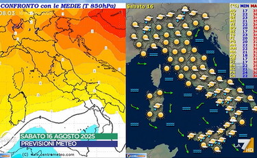Il tempo per domani, domenica 17 agosto, promette "molte zone soleggiate" ma anche "qualche rovescio su Alpi e Prealpi". Al centro "la giornata parte bene, ma ci sarà un nuovo aumento dell'instabilità, come al solito più attiva sulle zone interne e sui rilievi, con temporali localmente forti". A sud e sulle isole, "bel tempo inizialmente, ma anche qui isolati rovesci sulle aree interne tra Campania, Basilicata, Calabria e localmente sulla Sicilia nel pomeriggio", ha spiegato Sottocorona. Nessun cambio di passo netto per lunedì 18 agosto. "Al nord soleggiato, specie in pianura, poi qualche locale rovescio temporale, soprattutto sui rilieri, ma la tendenza è una generale attenuazione dell'instabilità su queste zone.Il Centrosud è invece con tempo sì stabile all'inizio, in prevalenza quindi sereno, ma con locali nubi sui rilievi e zone interne dei settori tirrenici e temporali in formazione nel pomeriggio, soprattutto dal Lazio in giù", ha concluso.
