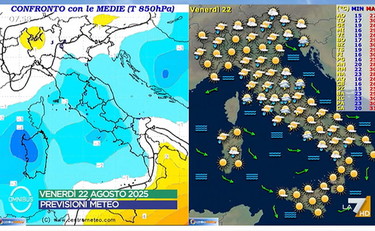 Nessun cambio di passo all'orizzonte. Domani, giovedì 21 agosto, è prevista "spiccata variabilità, con nubi sparse e schiarite" sulle Prealpi orientali e sull'Appennino tosco-emiliano. Al centro l'instabilità maggiore interesserà il versante adriatico, "con rovesci e temporali specie a inizio giornata". Al sud il tempo sarà "instabile sui settori peninsulari". Secondo la tendenza per domenica 24 agosto, tornerà ad aumentare al nord l'instabilità e quindi "si rinnoveranno le possibilità di rovesci e temporali". Al centro "prevarrà il sole", con "possibili locali e brevi rovesci". Al sud, infine, "l'instabilità toccherà la dorsale appenninica", conclude Sottocorona.