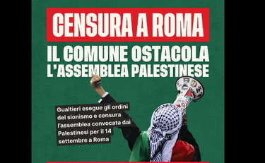 "L’ennesimo atto di censura politica si è consumato a Roma. L’amministrazione comunale, guidata dal sindaco esponente del Partito Democratico Roberto Gualtieri, ha scelto di piegarsi alle pressioni sioniste e di negare arbitrariamente lo spazio del Nuovo Cinema Aquila, gestito dal Comune, per l’assemblea nazionale convocata da tutte le sigle palestinesi per il 14 settembre. La motivazione addotta – il presunto "mancato rispetto dei termini della convenzione" – è un pretesto ridicolo, usato per mascherare un’operazione di repressione politica", scrive l'Api sui social confermando tra l'altro che l'evento aveva una finalità politica e pertanto non rientrerebbe nella convenzione del comune.