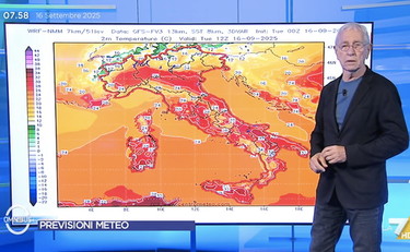 Sul fronte delle temperature le massime previste per la giornata di oggi vedono al centro e soprattutto al sud "zone con valori elevati, a metà settembre superare i 30° come in qualche caso in Puglia, Basilicata e Sicilia" è qualcosa "ben al di sopra della norma", osserva Sottocorona. "Un po' più normali" i valori al nord e al centro. La tendenza nelle prossime ore è di un calo di 2-4 gradi al nord e al centro, inferiori al sud.