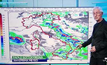Ottobre è alle porte ma qual è la situazione del tempo in questo inizio di autunno? Le previsioni meteo di Paolo Sottocorona per La7 riportano uno scenario caratterizzato da "fenomeni localmente intensi sui versanti adriatici", spiega l'esperto. Fenomeni localmente intensi anche sulle zone tirreniche. Lunedì 29 settembre "c'è un'attenuazione di questo maltempo al nord, al centro restano delle piogge ma non intense, ancora qualche fenomeno localmente intenso al sud e sulla Sardegna meridionale".
