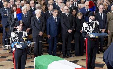 Posso farvi una promessa solenne: i nostri nomi, quello del Presidente, quello di ognuno di noi, sono scritti sulla sabbia delle memorie di alcune persone che ci vogliono bene, il nome dei giusti no. Il nome dei giusti di chi è morto per la Patria è scritto nella roccia della memoria della Repubblica e le forze armate sono custodi della memoria". Prima di Crosetto, prendono la parola i familiari dei militari morti. I loro pensieri sono stati accolti da applausi dentro e fuori la basilica dalla gente, assiepata dietro le transenne. "Presenti", urla qualcuno. "Marco, Valerio e Davide. Tre carabinieri che hanno dato la vita in nome della giustizia. Per senso del dovere e di appartenenza. Quello che voglio dire oggi con forza è che il loro sacrificio non sia reso vano. Faccio appello affinché episodi simili non debbano più accadere", dice Christian, il fratello del 56enne Marco Piffari. E Freddie Bernardello, padre di Davide, 36 anni, con un filo di voce prosegue idealmente rivolto al giovane: "Sei diventato quello che più desideravi, un carabiniere d'Italia. Per noi, anche per la mamma, un figlio meraviglioso.