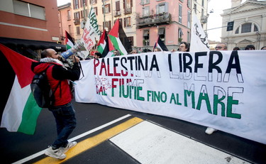 Shock al corteo: pro-Pal bruciano bandiera Usa e manifesto con Crosetto