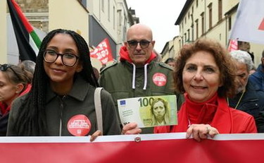 Migliaia di persone sono scese in strada a Firenze per partecipare alla manifestazione per lo sciopero generale indetto dalla Cgil. È da qui che il segretario generale Maurizio Landini guida la la "rivolta solitaria" ripetendo slogan ormai fuori dal tempo. Il corteo, che ha attraversato il centro della città, è partito da piazza Santa Maria Novella. Molti gli striscioni contro la manovra di Bilancio del governo Meloni, diffuse tra i partecipanti anche finte banconote da cento euro con sopra il volto della premier per dire basta ai tagli e chiedere salari più alti, pensioni dignitose, investimenti nei servizi pubblici e stop alla corsa al riarmo. Molte anche le bandiere della Palestina e cori propal scanditi lungo il corteyo. In piazza Santa Maria Novella anche la sindaca di Firenze, Sara Funaro. "I motivi per scioperare oggi e manifestare insieme alla Cgil sono, prima di tutto, dalla precedente finanziaria i tagli lineari sulla spesa corrente. Abbiamo visto e l'abbiamo annunciato durante il bilancio del Comune di Firenze più di 19 milioni nel triennio, per cui risorse importanti. Poi mancano risorse sul tema abitativo, per la ristrutturazione delle case popolari, per il contributo affitto, mancano risorse per tante partite che sono fondamentali, da quella del welfare a tante a tante altre".