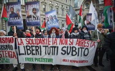 Dopo l’ultimo presidio organizzato venerdì sotto la Casa Circondariale di Monza, dove è detenuto Yaser Elasaly, membro del comparto estero dell’organizzazione terroristica Hamas, componente della cellula italiana e responsabile con Hussny Mousa della filiale milanese di A.B.S.P.P., la rete di solidarietà che fa capo a Mohammad Hannoun, leader dei palestinesi in Italia, è tornata a mobilitarsi. Un’altra manifestazione, l’ennesima, per chiedere la scarcerazione dei presunti finanziatori dei tagliagole si è svolta nel pomeriggio di ieri in Piazza della Scala a Milano. «Tutti uniti con una sola voce contro i fascisti» perché «la solidarietà non si arresta», è lo slogan dei presenti. E tra le sigle in piazza spuntano le solite note: insieme all’Associazione dei Palestinesi in Italia, infatti, i Giovani Palestinesi Italiani, Osa, Cambiare Rotta, Rete dei Comunisti, Potere al Popolo e l’Unione Sindacale di Base (USB). Oltre adAngela Lano, la direttrice del sito InfoPal al centro della maxi inchiesta della Procura di Genova. «Libertà pervMohammad Hannoun, Read Dawood, Yaser Elasaly e per tutti i prigionieri palestinesi». Sono le urla dei manifestanti avvolti dalle bandiere della Palestina alle quali si sono aggiunte quelle venezuelane, non per festeggiare la caduta del regime di Maduro e dunque lo spiraglio di libertà di un popolo, ma per esprimere vicinanza al dittatore comunista.