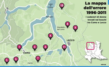 Parliamo di dodici donne uccise e fatte a pezzi nell’arco di 15 anni in un territorio estremamente ristretto: un fazzoletto di provincia lombarda intorno al lago di Como, dai boschi a sud del bacino fino a Lecco. Molte uccise con colpi tremendi e orrendamente mutilate. Il lessico giudiziario nella sua glaciale efficacia descrittiva rende bene l’idea: depezzate, come capi da macello. Una serie che va al di là di ogni proiezione statistica e criminologica. Cadaveri spuntati da sacchi neri nei boschi che si fondono con le campagne, tra il 1996 e il 2011. Alcuni appartenenti a ragazze non ancora o appena maggiorenni. Quasi tutti di donne straniere, finite a fare le prostitute di strada. Delitti dietro ai quali potrebbe esserci un’unica regia.