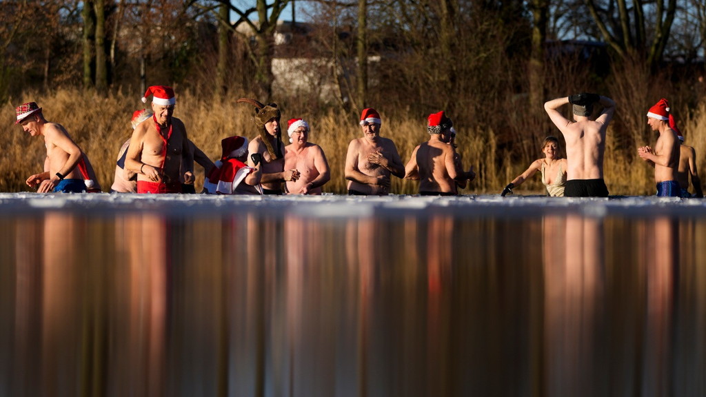 Le immagini del Natale 2021 nel mondo ai tempi del Covid sono anche in costume da bagno. Dal tuffo ghiacciato nelle acque di Berlino in Germania (terza foto) al Natale hot in costume in Australia con i super festeggiamenti sulla spiaggia di Sydney, a Bondi Beach. In acqua, dall'altra parte del mondo spunta pure la sirenetta italiana: al centro della prima foto - che nella seconda è a sinistra - c'è Chiara Rovelli vestita da Babbo Natale con le amiche Marta Arza e Julene Adres, spagnola. (foto LaPresse)