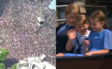 Un simpatico siparietto ha visto protagonisti i tre figli di William e Kate, arrivati a bordo di una carrozza. Il principe George, 8 anni, la principessa Charlotte, 7 anni e il piccolo principe Louis, 4 anni, erano seduti sul cocchio di fronte alla mamma e alla duchessa Camilla, moglie di Carlo, e salutavano sorridenti la folla. La piccola Charlotte a un certo punto blocca la mano del fratellino Louis per limitare la sua esuberanza.