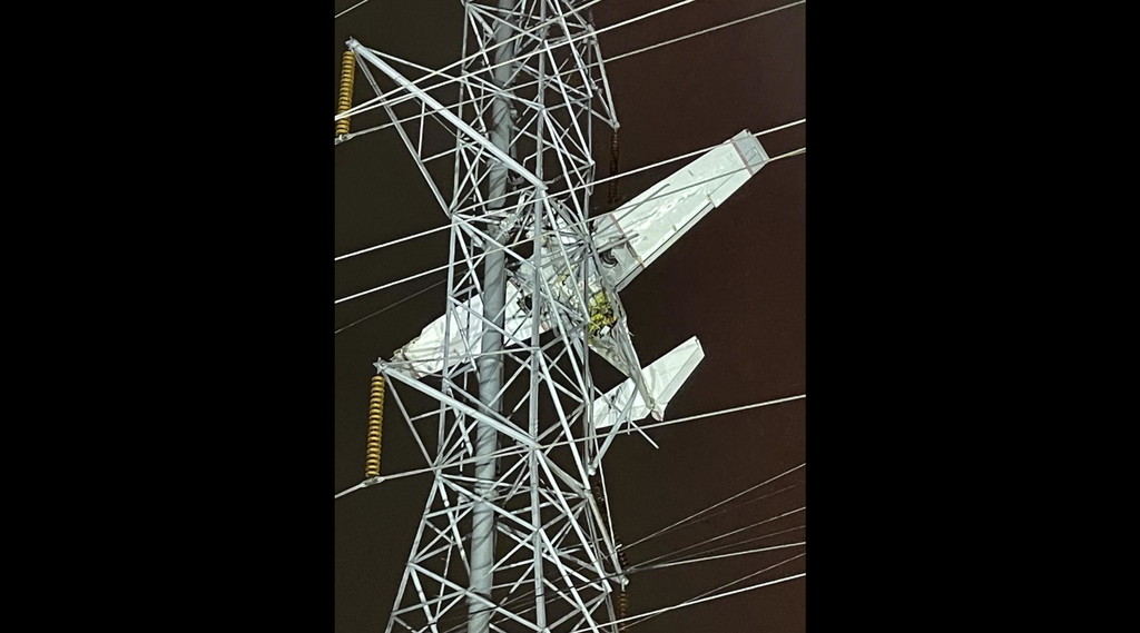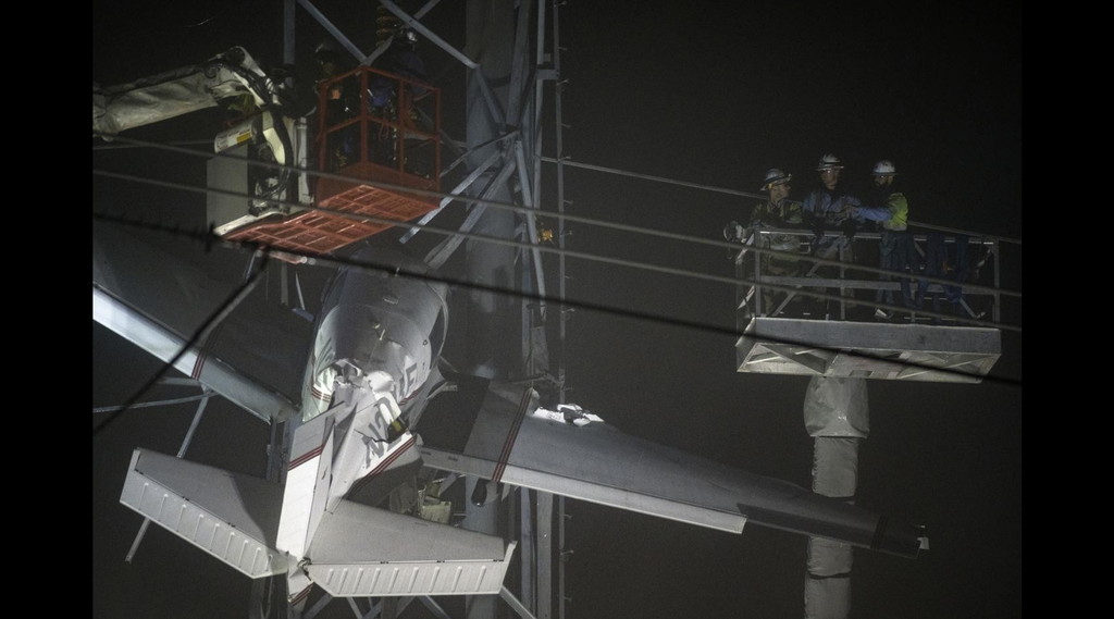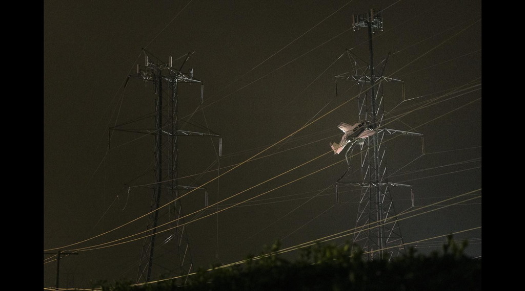 Maryland, aereo contro il palo della linea elettrica resta appeso tra i fili