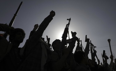 These Houthis gathered for instructions on an attack. Oops, there will be no attack by these Houthis!