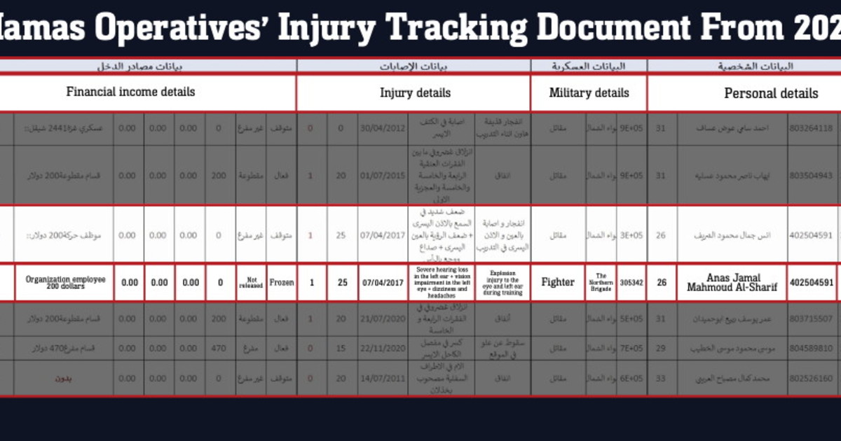 I documenti includono elenchi del personale, liste dei corsi di addestramento terroristico, elenchi telefonici e documenti relativi alle retribuzioni e per Israele sono "una prova inequivocabile del suo ruolo di terrorista militare di Hamas nella Striscia di Gaza". Documenti che "forniscono anche la prova dell'integrazione del terrorista di Hamas all'interno della rete qatariota Al Jazeera".