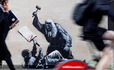 Londra, murale di Banksy sulla Corte di giustizia: giudice picchia manifestante