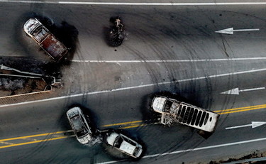I narcos hanno cercato di rallentare l’avanzata dei soldati con i cosiddetti “narcobloqueos”, ovvero interrompendo la circolazione autostradale con veicoli dati alle fiamme. Le testate locali, come El Universal e Reforma, hanno riferito di almeno sessanta attacchi dei narcos in undici Stati, incluso il vicino Michoacán, tra negozi dati alle fiamme e sparatorie.