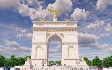 Mostrando la foto, Leavitt ha affermato che l'opera "monumentale" sarà alta 76,2 metri e al suo vertice campeggerà una enorme statua dorata della libertà. Di fatto, diventerà la struttura più grande del suo genere al mondo, superando l'Arco del Trionfo di Parigi, quello di Pyongyan e il Monumento alla Rivoluzione di Città del Messico. I progetti per l'arco sono stati rivelati per la prima volta a ottobre, quando i giornalisti hanno notato un modellino sulla scrivania di Trump nello Studio Ovale.