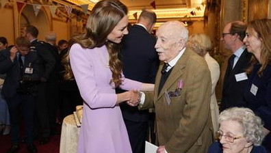 Londra, re Carlo, William e Kate ricevono i centenari a Buckingham Palace in ricordo di Elisabetta II