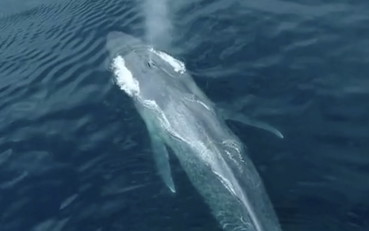 L'enorme balena si avvicina sott'acqua a una imbarcazione in mezzo al mare. In un primo momento il suo corpo è completamente sotto la superficie del mare. Poi viene in superficie e i suoi spruzzi bagnano l'area attorno a lei.