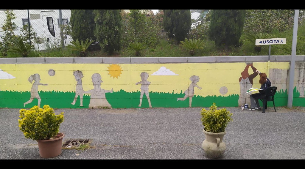 "La cosa più difficile è stato ritrovare l’entusiasmo dopo l’interruzione, ma a motivarci sono stati proprio i bambini che ci chiedevano in continuazione quando sarebbero potuti andare a dipingere e finire il muro” racconta la maestra Ombretta referente dello straordinario progetto insieme alla maestra Stefania che confessa: "Ci siamo fatte coraggio e siamo riuscite a ricominciare pensando che le difficoltà fossero terminate. In realtà il maltempo che si è protratto ci ha impedito a lungo di dipingere, alcuni giorni abbiamo lavorato sotto la pioggia con gli ombrelli. Poi ci siamo interrotte nuovamente a causa delle varie classi che di volta in volta venivano quarantenate”. ”Cosa mortificante - sottolinea la maestra Ombretta - è stato anche dover ridurre il numero dei partecipanti al progetto per via del divieto di assembramenti, ci siamo potuti incontrare solo all’aperto, riducendo il numero degli incontri, ed a piccoli gruppi, inoltre abbiamo perso gli sponsor esterni per l’acquisto di materiali e ci siamo dovute riorganizzare anche in questo". "Questo progetto del muro a colori - spiega la maestra Stefania - è un progetto di Service Learning che si va ad integrare agli Obiettivi dell’agenda 2030 in particolare del Goal 11. È un progetto che ci ha dato del filo da torcere, per via dell’emergenza sanitaria, infatti siamo state costrette ad interromperlo". "Insomma finalmente ci siamo riuscite - esultano le insegnanti - Il muro ora non è più brutto e grigio come dicono i bambini ma bello e colorato e decora e valorizza il nostro Palazzetto dello Sport”.