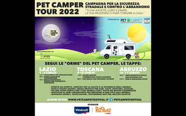 “Tu hai 4 ruote, loro 4 zampe. La tua prudenza ci farà tornare a casa”, con questo slogan torna la seconda edizione del Pet Camper Tour che quest’anno si propone come campagna di sensibilizzazione viaggiante, in collaborazione con Anas (Gruppo Fs Italiane), in difesa di tutti gli animali, abbandonati o selvatici, purtroppo spesso vittima di incidenti a causa della velocità. Migliaia di impatti sulle strade che coinvolgono, in alcuni casi drammaticamente, gli stessi umani.