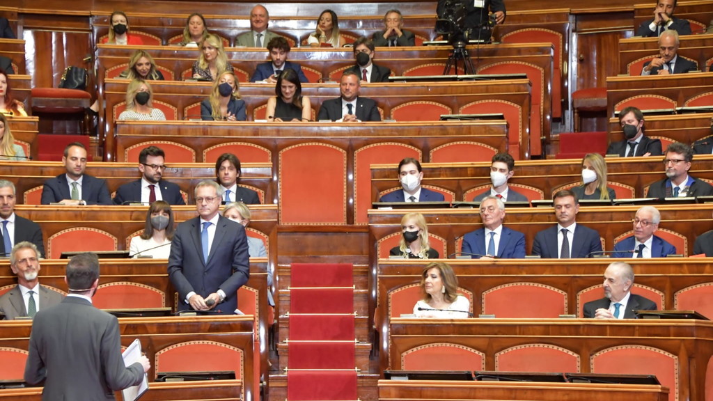 La cerimonia, dopo l’esecuzione dell’Inno nazionale da parte di Musica Nuda, Petra Magoni e Ferruccio Spinetti, è stata aperta dal saluto del presidente Casellati con la partecipazione del presidente di Confindustria Carlo Bonomi, a seguire, l’esibizione del cantautore Giovanni Caccamo.
