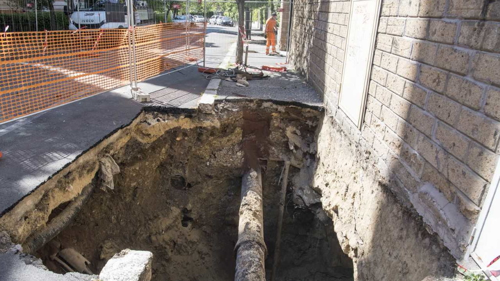 Via Giannetto Valli 95, evacuati e senz'acqua per la voragine di 10 metri