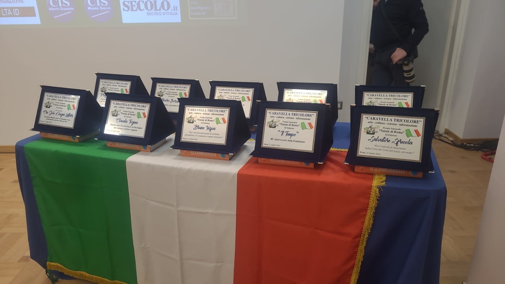 Nel giorno del Natale di Roma, domenica 21 aprile, nei saloni della Fondazione di An in via della Scrofa sono stati consegnati i premi «Caravella Tricolore». Tra i premiati con il prestigioso riconoscimento nazionale anche Il Tempo, rappresentato dal direttore Tommmaso Cerno, in occasione degli 80 anni dalla fondazione del quotidiano. Giunto all’XI edizione, il premio è andato al Secolo d’Italia nel 70esimo anniversario dalla fondazione, a Bruno Vespa per l’attività pluriennale di scrittore, giornalista e conduttore e autore televisivo, allo scrittore e saggista Claudio Togna, membro del Cda del Parco Archeologico del Colosseo, all’avvocato Salvatore Sfrecola per l’attività di magistrato della Corte dei conti del Lazio, a Hoara Borselli, opinionista politica e giornalista d’inchiesta, ad Antonio Buccioni, imprenditore dello spettacolo circense, e come detto al quotidiano Il Tempo nell’80esimo anniversario della fondazione. Ritirando il riconoscimento, Cerno ha ricordato la tradizione del quotidiano fondato dal senatore Renato Angiolillo e ribadito che il giornale si batte perché la voce del popolo sia la più forte: "Basta governi senza voto popolare".