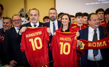 Roma, 12 febbraio 2025 - Oggi, presso la Sala Mechelli del Consiglio regionale del Lazio alla Pisana, si è svolta la cerimonia di premiazione della AS Roma femminile calcio ( vincitrice della supercoppa italiana) e della ASD Roma 1927 Futsal - Under 19 maschile (squadra di calcio a 5, vincitrice di Campionato, Coppa Italia e Supercoppa). Presenti all'iniziativa, il Presidente del Consiglio regionale del Lazio, Antonello Aurigemma, l'assessore regionale allo Sport, Elena Palazzo e numerosi consiglieri regionali. Hanno partecipato anche il Presidente del Coni Lazio, Riccardo Viola; il Direttore Sportivo della AS Roma Calcio Femminile, Gianmarco Migliorati; per la ASD Roma 1927 Futsal, il presidente Andrea Verde e il Direttore Generale Alessandro Angelucci.