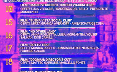 Solo nel mese di luglio avremo il film del padre di Carlo, Luca e Silvia Verdone “Mario Verdone: il Critico viaggiatore”, raccontato nel lungometraggio dai figli; l’ambasciatrice di Cuba raccontarci i segreti del capolavoro di Win Wenders “Buena Vista Social Club”; Anna Foglietta, Luisa Morgantini e il presidente della comunità Palestinese di Roma e Del Lazio Yousef Salman presentare il film premio Oscar “No Other Land”; L’ambasciatrice del Nicaragua e Fabrizio Casari portare un film unico “Sotto Tiro”. Vedere il capolavoro “Dogman” in versione Director’s Cut raccontato da Matteo Garrone e Marcello Fonte. Il 19 luglio l’evento commemorativo di una delle più grandi tragedie della nostra città, il bombardamento di San Lorenzo, raccontato in uno spettacolo unico, per il quartiere di Roma mai domo e sempre pronto alla riscossa. Ed ancora il ricordo del Maestro Gigi Magni con “Nell’anno del Signore” e Paolo Virzì e Thony che ci racconteranno “Tutti i Santi Giorni”.