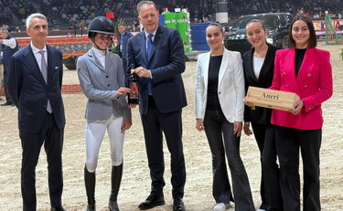 Un premio speciale per Maria Eder Ferrero come più giovane amazzone della Longines FEI Jumping World CupTM a VeronaFiere: una bottiglia di Aneri Amarone 2007 (l’anno di nascita di Maria Eder) con il suo nome impresso sull’etichetta. Con il presidente di Veronafiere spa, Federico Bricolo, e con Armando Di Ruzza, Event Manager di FieraCavalli ed Exhinition Manager Area B2C di Veronafiere, a consegnare il premio sono state Lucrezia, Ludovica e Giorgia Aneri, tre giovanissime che rappresentano la terza generazione della famiglia Aneri. Così come Maria Eder – figlia dello scomparso Pietro Ferrero – appartiene alla dinastia cui fa capo l’industria italiana dolciaria più famosa nel mondo.
