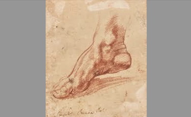 Un minuscolo foglietto (13,5x11,5) mai documentato, che raffigura un anonimo piede ombreggiato a sanguigna, è stato autenticato dagli esperti di Christie’s come un rarissimo disegno autografo di Michelangelo preparatorio per il piede destro della sibilla Libica, che troneggia tra le vele, nella zona mediana della volta, della cappella Sistina. Nel confronto fra il disegno ritrovato e la stesura finale ad affresco la differenza è notevole; nel primo caso il piede è appena appoggiato a terra con eleganza in un leggero arco della pianta. Nell’affresco, invece, la Sibilla, nel suo dinamico scatto di alzarsi, determina la particolare posizione del piede, poggiato solo sulle falangi, che l’artista rappresenta scorciato con grande tensione.