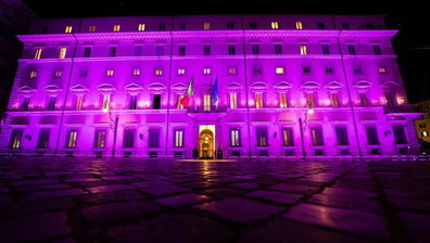 Palazzo Chigi illuminato di rosa per la campagna di prevenzione dei tumori