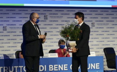 Il presidente Gardini ha donato al presidente del Consiglio Conte la pianta di melograno, “il cui frutto è il simbolo dell’unità e della compattezza dei cooperatori”.