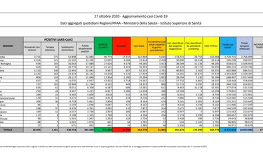 ROMA (ITALPRESS) – Sono 21.994 i nuovi casi di Coronavirus in Italia, rispetto ai 17.012 casi fatti registrate nelle ultime 24 ore. Nelle ultime 24 ore sono stati effettuati 174.398 tamponi, contro i 124.686 di ieri. E’ quanto emerge dal bollettino sull’emergenza Coronavirus dell Ministero della Salute. E’ invece salito a quota 37.700 il numero delle vittime totali da inizio pandemia, con 221 morti registrati nelle ultime 24 ore. Il totale degli attualmente positivi in Italia è di 255.090, dei quali 239.724 in isolamento domiciliare. Il numero di ricoverati è di 13.955 (+958 rispetto a ieri), dei quali 1.411 (+127) in terapia intensiva. A livello regionale, maglia nera alla Lombardia con 5.035 nuovi casi, seguita da Campania con 2.761, Piemonte 2.458, Lazio 1.993, Toscana 1.823. La regione con meno nuovi casi è la Valle d’Aosta con 57, seguono Molise con 66 e Basilicata con 77.
