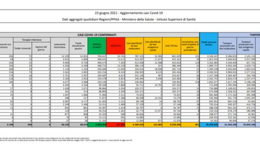ROMA (ITALPRESS) – Nuova (anche se contenuta) crescita dei nuovi casi di coronavirus che rimangono comunque sempre sotto quota 1000. Per l’esattezza i nuovi positivi sono 951, in rialzo di 116 unità rispetto a ieri a fronte però di un numero superiore di tamponi processati, 198.031 e che determina un tasso di positività allo 0,48%. A riportarlo il Ministero della Salute nel consueto quotidiano bollettino. Quasi stabili i decessi, 30 (-1).